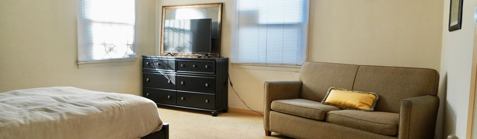 The home is renovated for each bedroom to have its own private space. The largest bedroom can also be enclosed as a private suite, with a separate entrance from the backyard. This home can comfortably house 2-4 students.