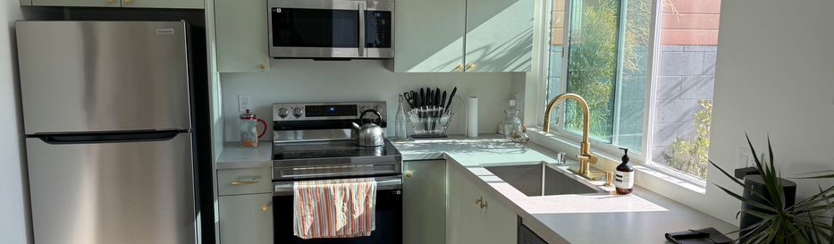 Recently constructed furnished ADU w/ lots of light, full kitchen and private backyard w/ hot tub (shared w/ main house)